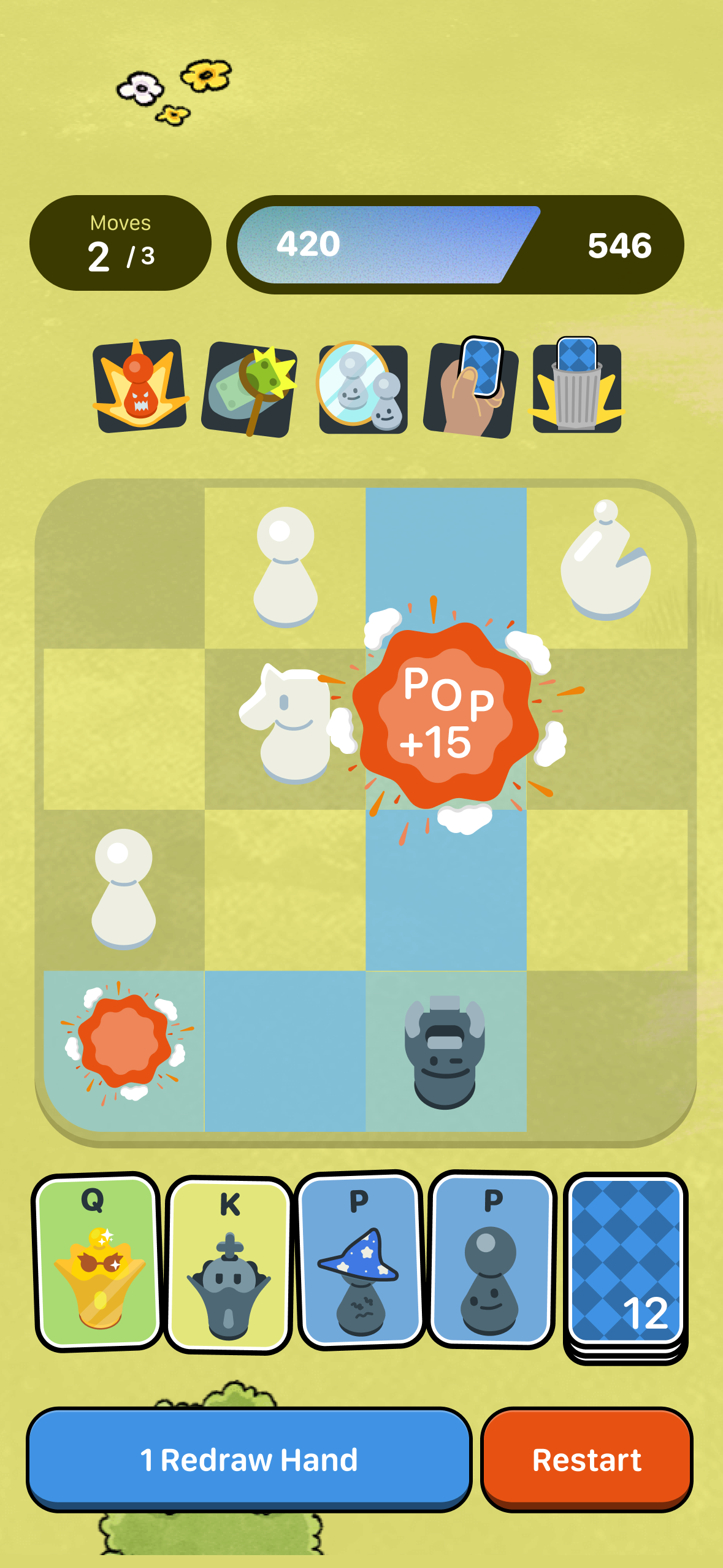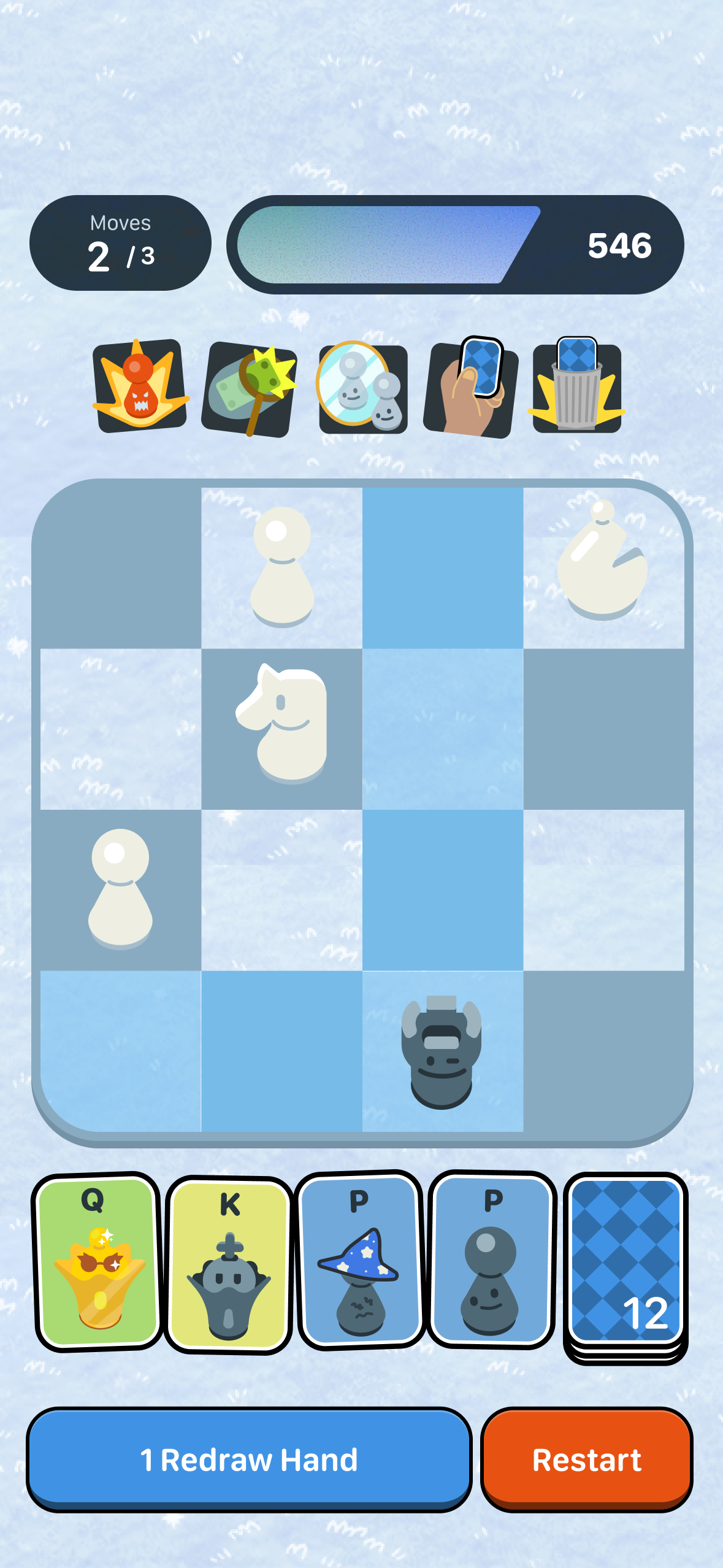 Build a deck of moves, upgrade your pieces with powerful abilities, and battle through randomized boards that rewrite the rules of the game.