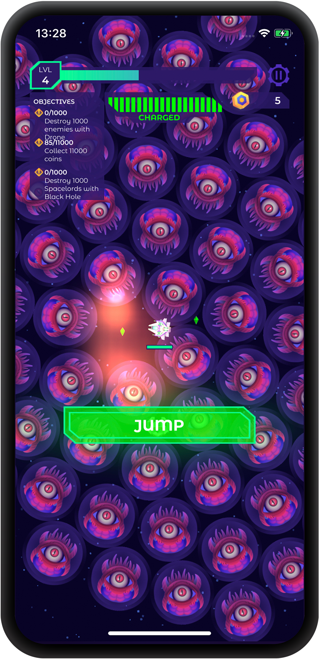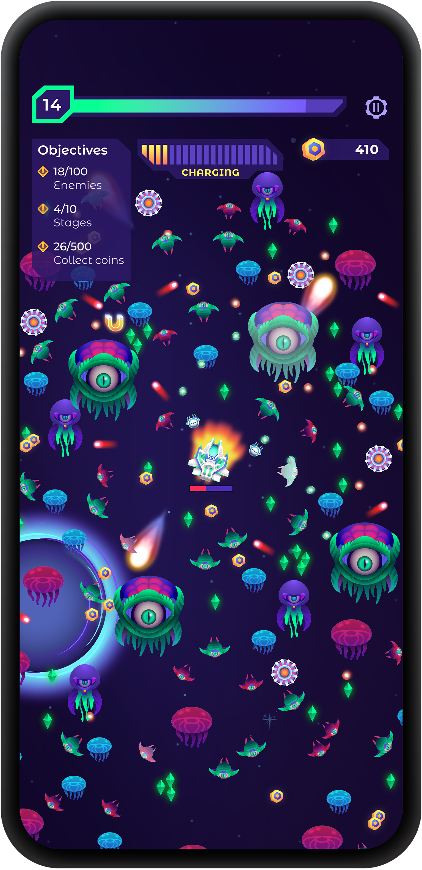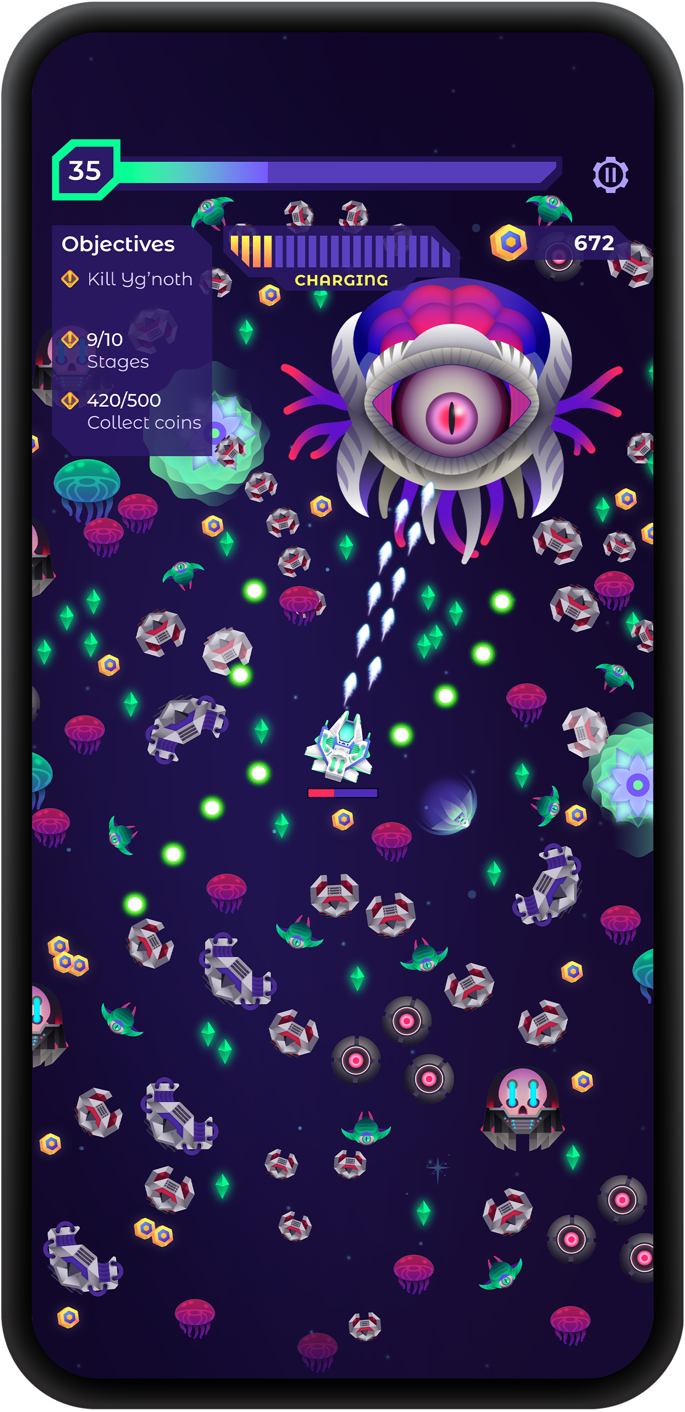 Blast through alien hordes, collect power crystals, and upgrade your ship to withstand impossible odds.